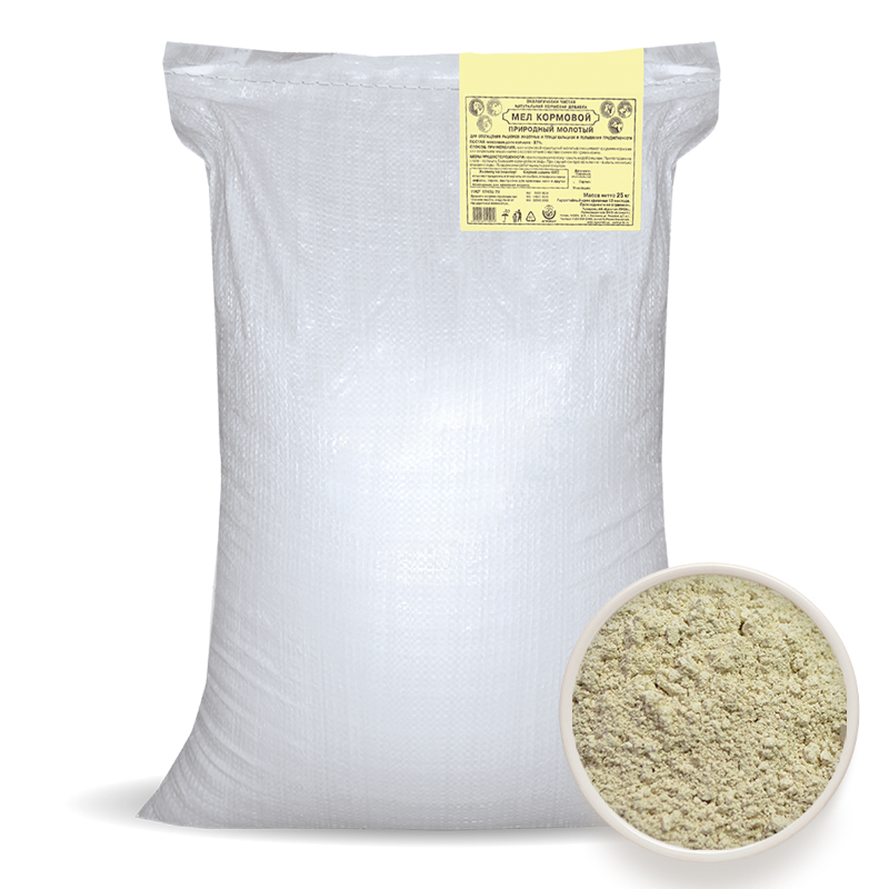 Мел кормовой - экологически чистая натуральная кормовая добавка для обогащения рациона сельскохозяйственных животных и птиц кальцием. Кальций служит основным материалом для построения костной ткани, регулирует кислотно-щелочное равновесие, участвует в деятельности эндокринной, мышечной и нервной систем, обеспечивает иммунный статус и устойчивость организма к воздействию неблагоприятных факторов внешней среды, снижает воздействие стрессов на организм животных. Способствует:
