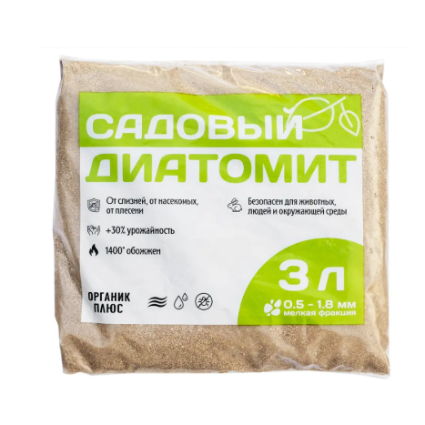 Диатомит Садовый расфасовывается в пакеты по 3000мл.