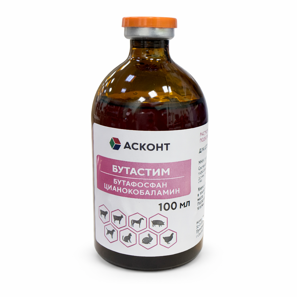 Бутастим (Butastim) - раствор для инъекций относится к комплексным общеукрепляющим и тонизирующим лекарственным препаратам, нормализует метаболические и регенеративные процессы, оказывает стимулирующее действие на белковый, углеводный и жировой обмен веществ, повышает резистентность организма к неблагоприятным факторам внешней среды, способствует росту и развитию молодняка животных. По внешнему виду препарат представляет собой прозрачную жидкость от светло-розового до розового цвета.
