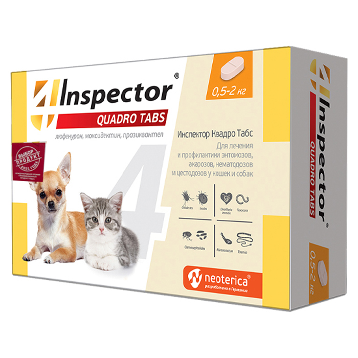 Инспектор Квадро Tabs для кошек и собак 0,5-2кг