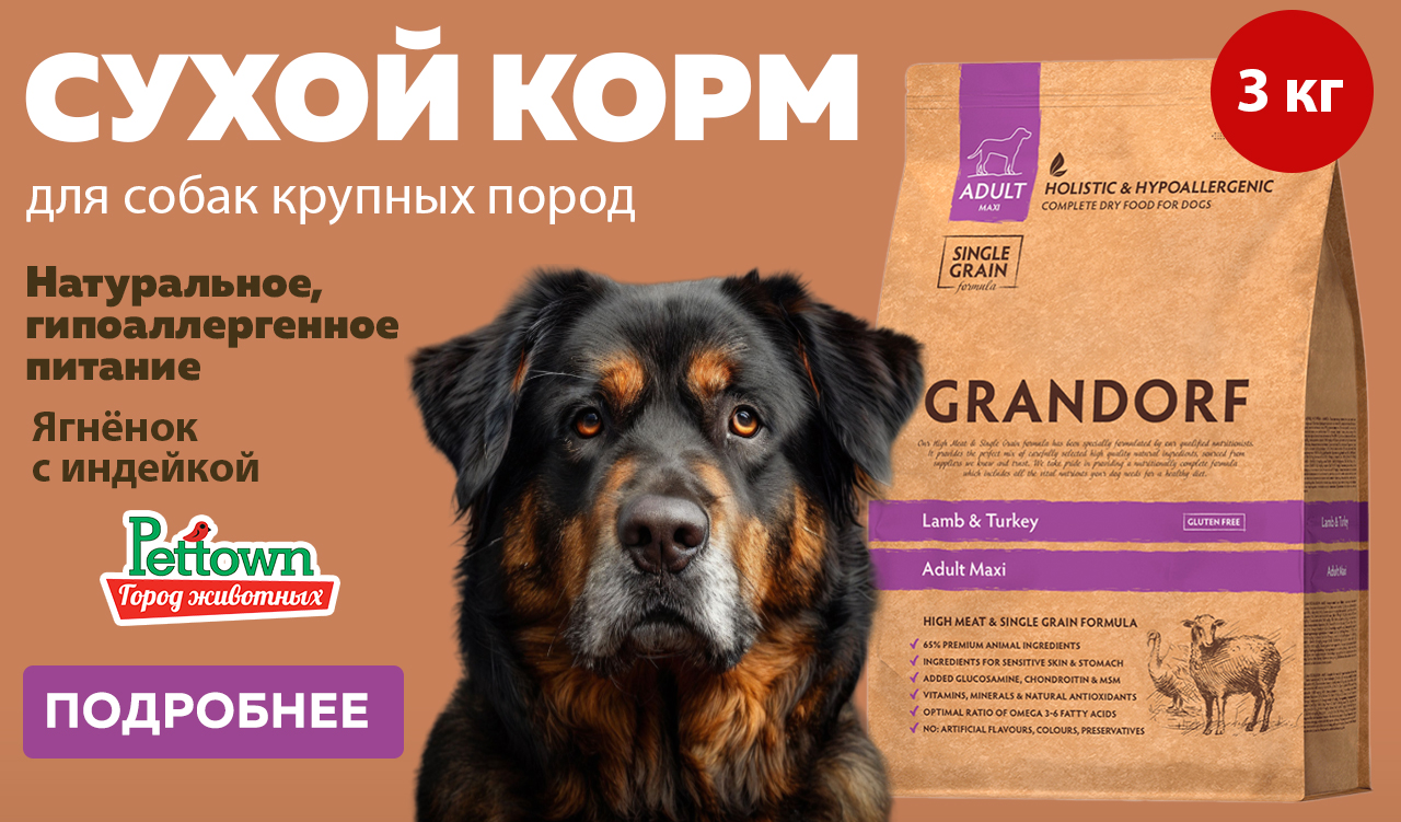 Грандорф (Grandorf Lamb&Turkey Large) ягненок с индейкой для собак крупных пород - идеально подходит питомцам с чувствительным пищеварением или склонным к аллергии.